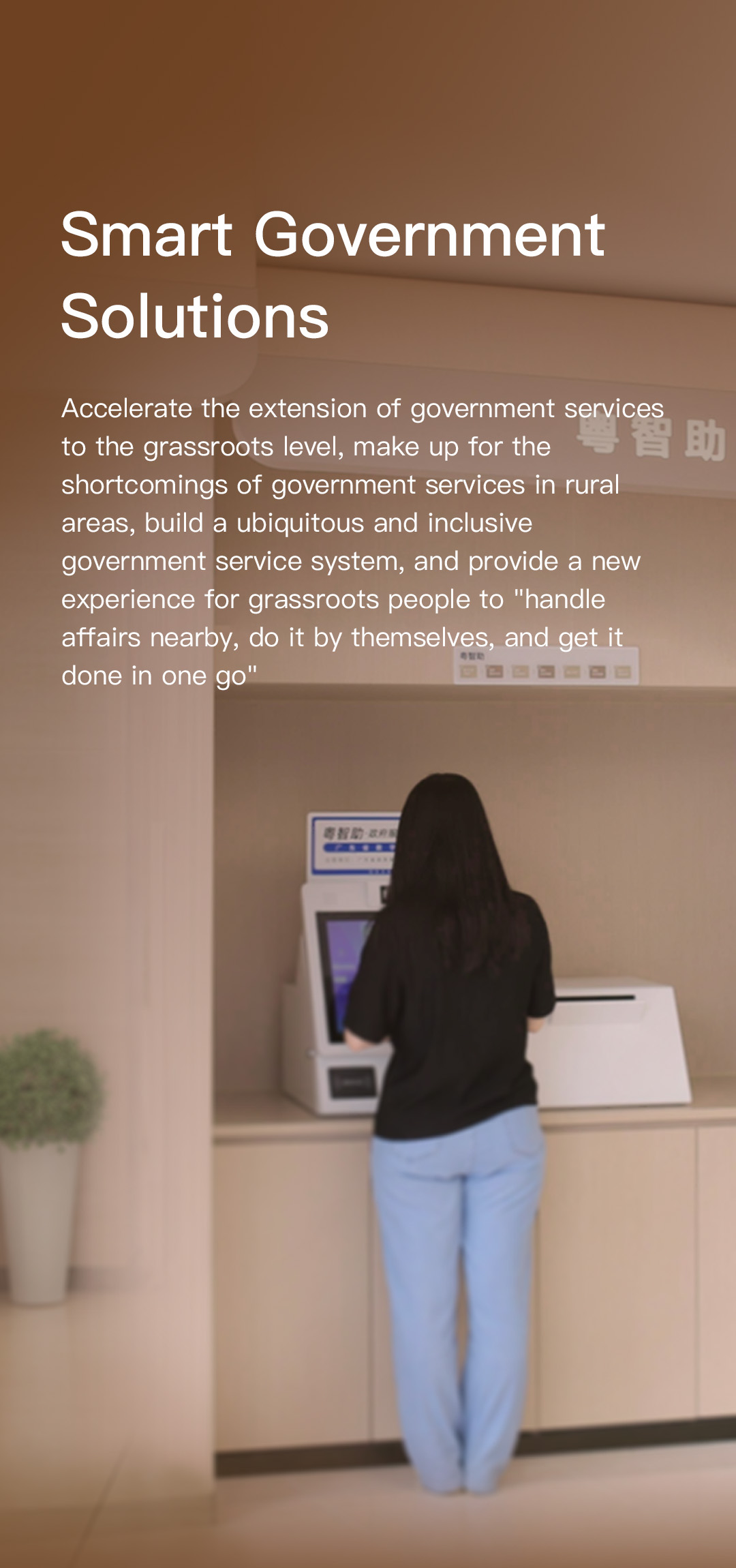深化“數(shù)字政府”建設(shè),提升政務(wù)服務(wù)能力,進一步推動政務(wù)服務(wù)向基層延伸,實現(xiàn)基層群眾辦事“就近辦、自助辦、一次辦成”。
